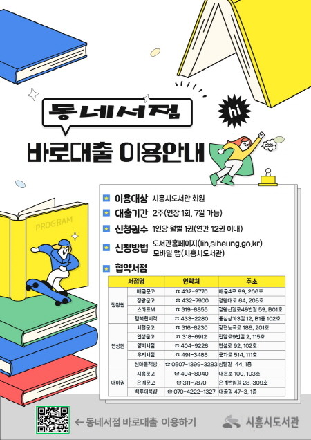 동네서점 바로대출 서비스와 관련된 문의는 시흥시도서관으로 연락하면 안내받을 수 있다.