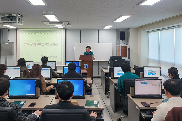 이번 교육은 재산신고 의무자가 정확한 재산신고를 할 수 있도록, 주요 실수사례 등을 안내하고, 실제 공직윤리시스템을 이용해 재산변동신고서 작성과 재산등록방법 등을 익혀 현장에서 재산신고를 실시 할 수 있도록 지원했다.