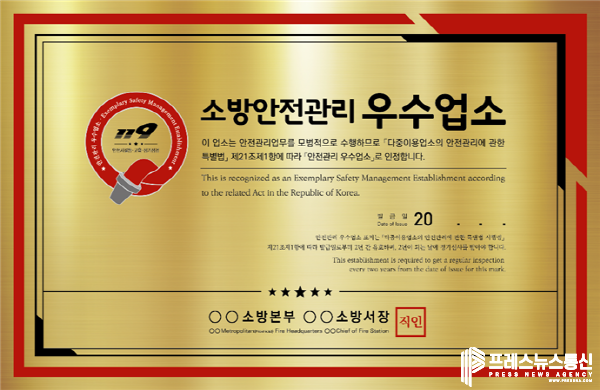 최종 선정된 우수 다중이용업소에는 소방서장 표창과 함께, 소방 특별조사 및 소방안전교육 면제, 안전관리 우수 인증 표지부착 등의 혜택이 주어지며 인증 기간은 2년간 유효하다.