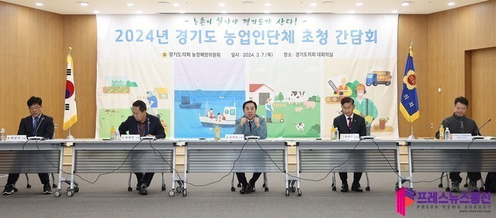 [프레스뉴스] 류현주 기자= 경기도의회 농정해양위원회(위원장 김성남, 국민의힘·포천2)는 지난 7일 도내 주요 농업인단체를 초청하여 간담회를 개최하고 단체별 건의사항 및 애로사항을 청취 및 개선 방안을 논의하는 자리를 가졌다.