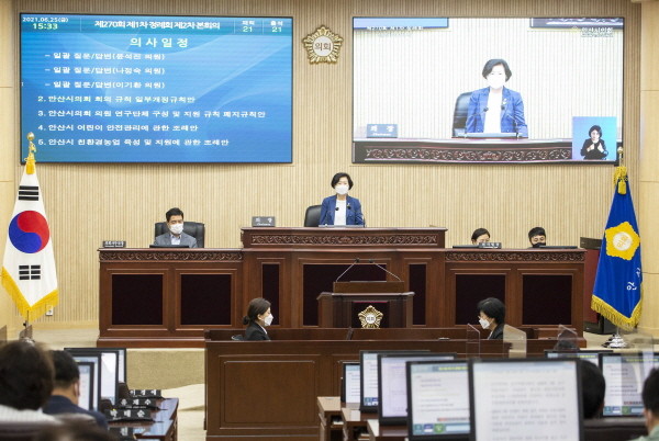 시정질문에 이어서는 ‘안산시의회 회의 규칙 일부개정규칙안’ 등 의회운영위원회와 기획행정위원회, 문화복지위원회, 도시환경위원회가 심의한 44건의 안건들과 예산결산특별위원회가 다룬 ‘2020 회계연도 결산’ 등 3건, 이날 추가로 부의된 ‘안산도시공사 임원추원위원회 위원 추천의 건’ 등 3건의 의결이 이뤄지기도 했다.