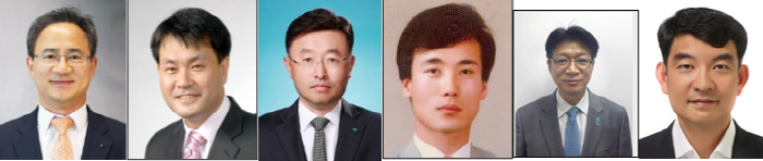 | ▲ 왼쪽부터 박병준 경영지원그룹 겸 청라HQ추진단 부행장, 성영수 CIB그룹 부행장, 안선종 Biz.혁신그룹 부행장, 전우홍 여신그룹 부행장, 김주성 리스크관리그룹 부행장, 박태순 정보보호본부 상무(사진=하나은행) |