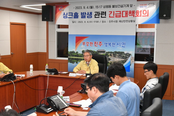 | ▲진주시 상평동 싱크홀 발생 관련 긴급대책회의. (사진=진주시 제공) |