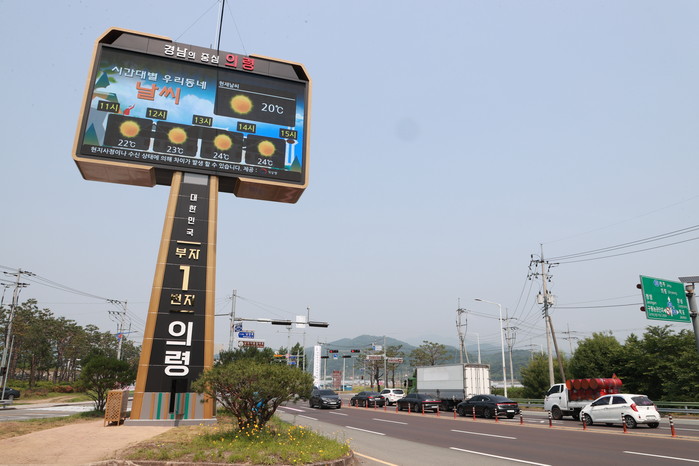 ▲의령군은 의령읍 백야오거리 교차로에 재난상황 홍보전광판을 신규 설치하고, 6월부터 본격적인 운영에 들어갔다고 밝혔다. (사진=의령군) |