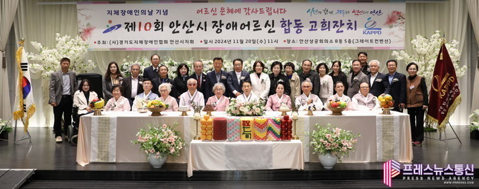 [프레스뉴스] 장현준 기자= 안산시(시장 이민근)는 지난 20일 안산상공회의소에서 ‘제10회 안산시 장애인 합동 고희 잔치’를 개최했다고 21일 밝혔다.