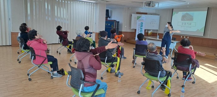 보건소 한의사는 근골격계질환의 발생 원인과 주 증상 및 합병증에 대해 교육하고, 운동처방사는 통증 완화 운동법과 일상생활의 올바른 자세와 예방 운동법을 설명하며, 교육의 효율성을 높이기 위해 6명 내외의 소그룹으로 진행됐다.