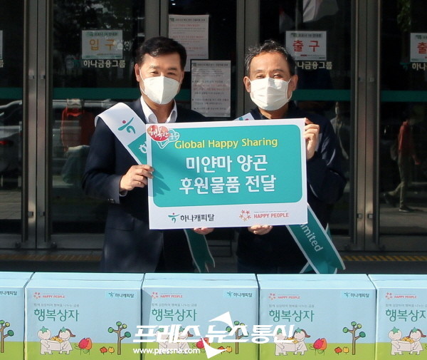 [프레스뉴스] 김대일 기자= 하나캐피탈(대표이사 윤규선)은 ESG경영 실천의 일환으로 미얀마 저소득층 가정 지원을 위한 ‘Global Happy Sharing’ 기부 캠페인을 실시하고 지난 10월 22일 기부 물품 전달 행사를 가졌다고 밝혔다.