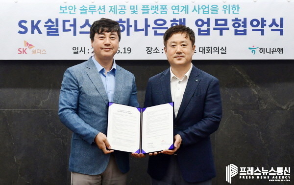[프레스뉴스] 김대일 기자= 하나은행(은행장 이승열)은 라이프 케어 플랫폼 기업 SK쉴더스(대표 박진효)와 『보안솔루션 제공 및 금융서비스와 연계한 공동 비즈니스 추진』을 위한 업무협약을 체결하고 개인사업자의 안정적인 성장 지원에 나선다고 밝혔다.