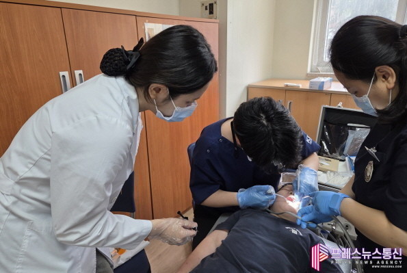 ▲단원보건소 구강보건센터에서 외국인 밀집 거주지역 내 아동을 대상으로 치아홈메우기 예방진료를 하고 있다.(사진=안산시) |