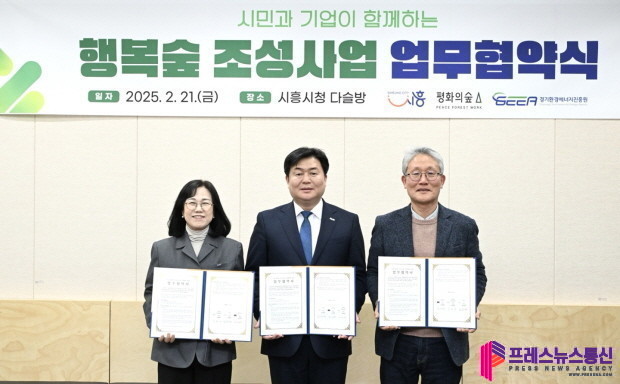 [프레스뉴스] 장현준 기자= 시흥시(시장 임병택)는 지난 2월 21일 시청 다슬방에서 평화의숲, 경기환경에너지진흥원과 함께 ‘행복의숲 조성사업’ 업무협약을 체결했다.