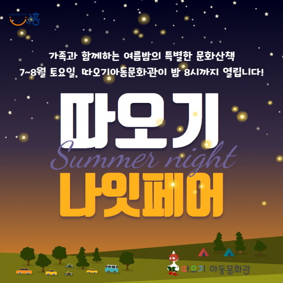 [프레스뉴스] 장현준 기자= 시흥시의 대표적인 아동문화공간인 따오기아동문화관이 여름철을 맞아 ‘따오기 나잇페어’를 7월 12일부터 운영한다.