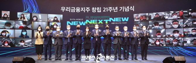 [프레스뉴스] 김대일 기자= 우리금융그룹(회장 손태승)은 지난 11일 서울 중구 회현동 소재 본사에서‘New next, Next new(항상 앞서가는 새로움으로)’를 슬로건으로창립기념식을 개최했다고 12일 밝혔다. 특히, 도전을 거듭한 역사를 바탕으로 성공한 완전 민영화를 축하하고, 최초 금융지주사의 21년 역사 복원을 선언하는 기념식을 가졌다.