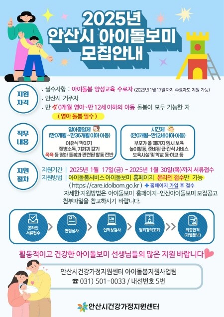 | ▲2025년 안산시 아이돌보미 모집 안내 포스터(사진=안산시) |