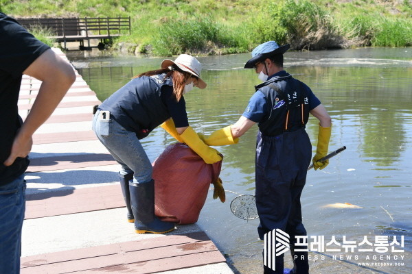 지난 밤 오랜 가뭄 속 비로 도로 오염원 하천 유입…잉어떼 수거 등 피해 최소화