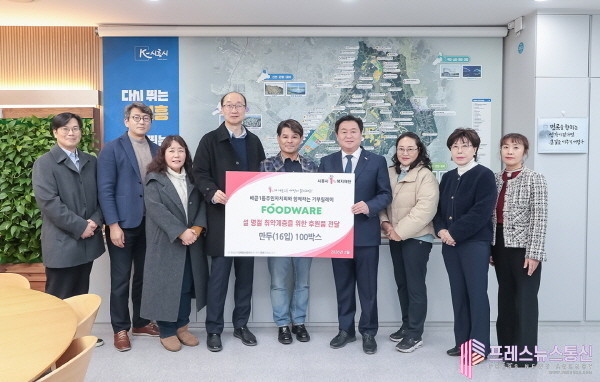 [프레스뉴스] 장현준 기자= 시흥시(시장 임병택)는 지난 2월 11일 ㈜푸드웨어가 저소득층 지원을 위해 냉동만두 약 1천600여 개를 시흥시1퍼센트복지재단에 전달했다고 밝혔다.