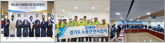 도는 전국 최초로 배달노동자 산재보험료 지원과 함께, 산업재해예방 부서별 협의체 구축, 노동안전지킴이 출범, 대형공사장 1,535개소 대상 소방패트롤 점검, 산업재해예방 국회토론회를 통한 공론화 추진 등 산업재해를 예방하고 안전한 노동일터를 만드는데 힘써왔다.