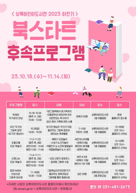 | ▲상록어린이도서관 2023 하반기 북스타트 후속프로그램 안내 포스터(사진=안산시) |