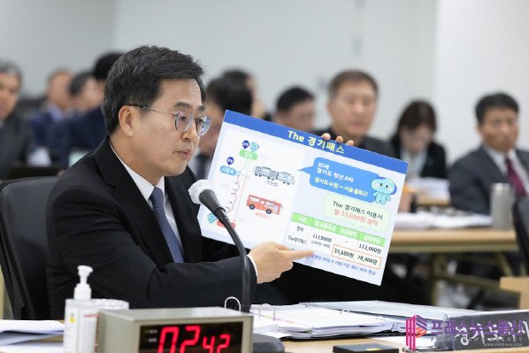 | ▲2023년 10월 23일 오후 경기도청 4층 다목적회의실에서 열린국토교통위원회 국정감사에서 김동연 경기도지사가 도정질의에 답변을 하고 있다.(사진=경기도) |