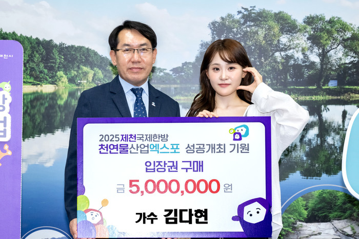 시에 따르면 이날 김다현은 “2025제천국제한방천연물산업엑스포의 성공 개최에 힘을 보탤 수 있어 기쁘다”며 “구입한 입장권은 소외계층을 위해 기부할 계획”이라고 소감을 밝혔다.