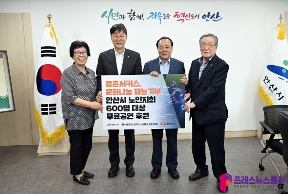 지난 12일 안산시청에서 이민근 안산시장과 박세환 동춘서커스 대표, 상록노인지회 수석부회장, 단원노인지회장 등이 참석한 가운데 동춘서커스의 재능기부 전달식이 개최됐다.