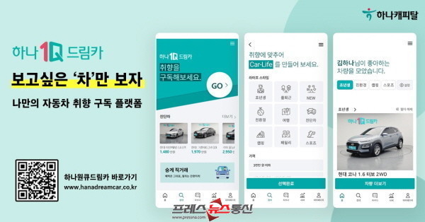 [프레스뉴스] 김대일 기자= 하나캐피탈(대표이사 윤규선)은 중고차 거래 플랫폼 『하나원큐드림카』를 손님의 관심 키워드에 따라 자동차 모델과 정보를 맞춤 제공하는 ‘자동차 생활 플랫폼’으로 전면 개편한다고 밝혔다.