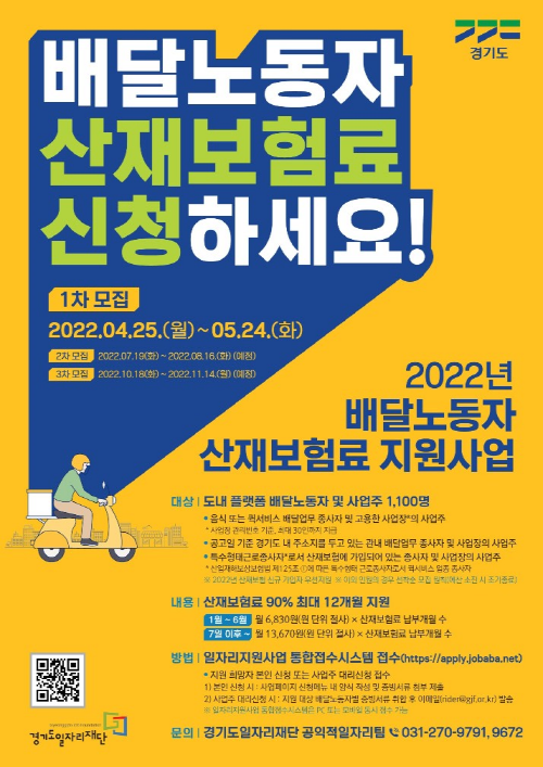 ▲ 2022년 배달노동자 산재보험 지원사업 포스터(사진=경기도북부청) |