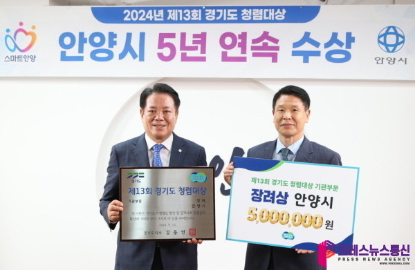최대호 안양시장은 “경기도 청렴대상 기관 부문에서 5년 연속 수상할 수 있었던 것은 안양시 모든 공직자가 청렴 활동에 꾸준한 관심을 갖고 함께 만들어낸 결과”라며 “앞으로도 청렴 시책을 적극 추진해 시민이 신뢰할 수 있는 안양시를 함께 만들어가겠다”고 말했다.