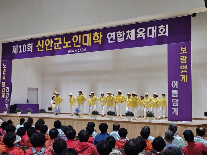 한편, 신안군 노인대학은 평생교육의 일환으로 3월부터 12월까지 관내 8개 읍면에서 65세 이상 약 1,200명의 어르신을 대상으로 노래교실, 건강체조교실, 한글교실, 스마트폰 교육, 풍물 등 다양한 프로그램을 운영하고 있다.