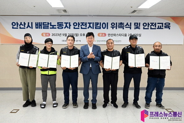 지난 25일 와~스타디움 기자실에서 열린 위촉식에는 이민근 안산시장과 박재철 안산시 비정규직노동자지원센터장, 배달사업주 및 노동자, 경찰서 관계자 등 70여 명이 참석한 가운데 안전지킴이 위촉장 수여와 안전교육 등이 진행됐다.