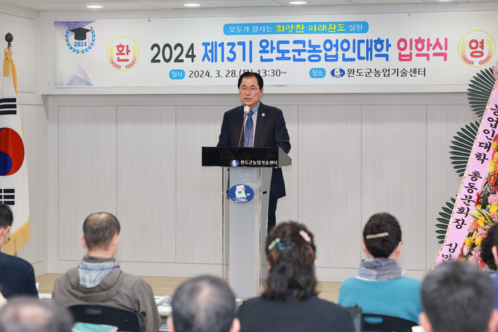 [전남=프레스뉴스] 박정호 기자= 전남 완도군은 지난 28일 농업 발전에 필요한 기술 교육을 통해 전문 농업인을 양성하고자 「제13기 완도군 농업인대학 입학식」을 개최했다.