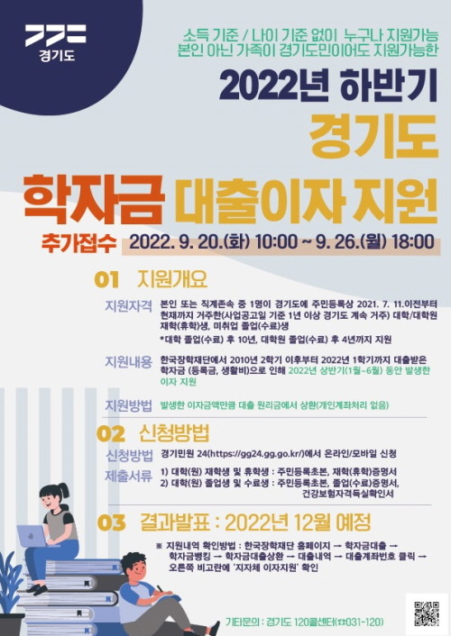 [프레스뉴스] 장현준 기자= 경기도가 20일부터 26일까지 일주일간 2022년도 하반기 ‘경기도 대학생 학자금 대출 이자 지원’ 추가 접수를 받는다.