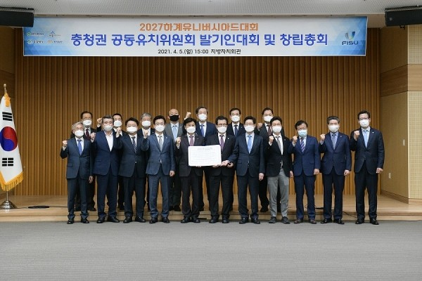 시는 5일 어진동에 위치한 지방자치회관 대회의실에서 이춘희 시장을 비롯한 충청권 4개 시도지사 등이 참석한 가운데 ‘2027하계유니버시아드대회 충청권 공동유치위원회 창립총회’를 개최했다고 밝혔다.