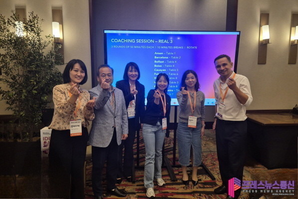 ▲김민정 전략사업과 공모사업팀장(오른쪽 두번 째)이 美 블룸버그재단 글로벌 시장 챌린지 아이디어 캠프에 참가해 안산시 사업을 설명하고 있다.(사진=안산시) |