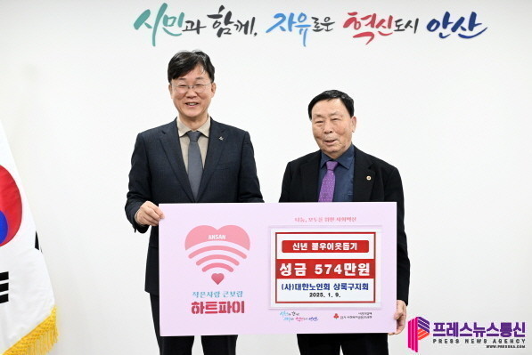 [프레스뉴스] 장현준 기자= 안산시(시장 이민근)는 지난 9일 사단법인 대한노인회 안산시 상록구지회(지회장 김중근)로부터 불우이웃돕기 성금 574만 원을 전달받았다고 10일 밝혔다.