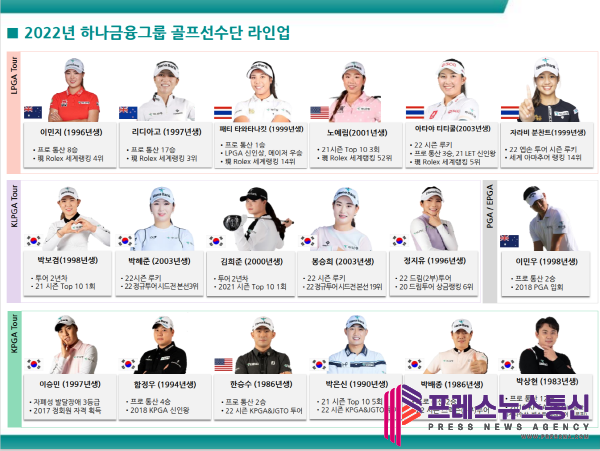 | ▲ 2022년 하나금융그룹 골프선수단 라인업(사진=하나금융그룹) |