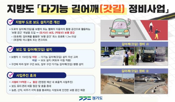 김창욱 경기도 도로안전과장은 “이번 지방도 다기능 길어깨 정비사업으로 안전한 보행 공간이 더욱 확대될 것”이라며 “효율적인 보도 유지·관리로 예산 절감에도 분명히 도움이 될 것으로 기대한다”고 밝혔다.