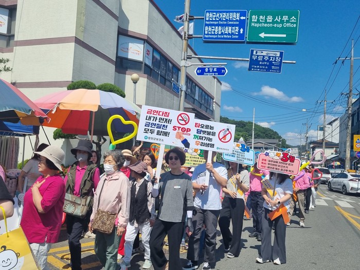 합천군은 지역사회 내 금연 분위기 조성을 위해 금연지도원 4명을 위촉하여 관내 1,263개 금연구역을 점검했다. 합천왕후시장을 중심으로 민·관 협력을 통해 금연 캠페인을 진행하며 홍보를 강화했다.