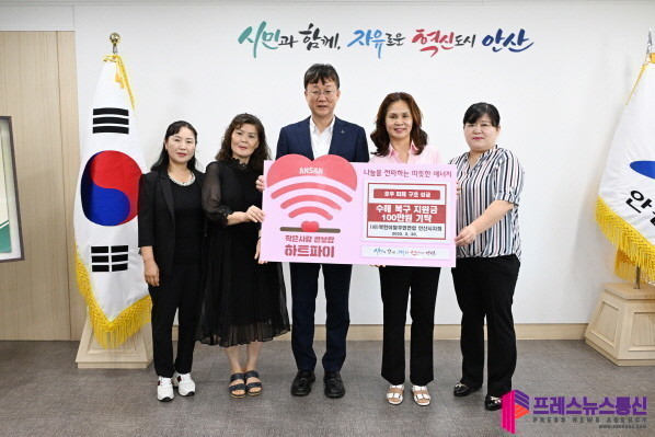 [프레스뉴스] 장현준 기자= 안산시(시장 이민근)는 지난 20일 (사)북한이탈주민연합 안산시지회(회장 주예림)로부터 여름 호우피해 특별모금을 위한 성금 100만 원을 기탁받았다고 21일 밝혔다.
