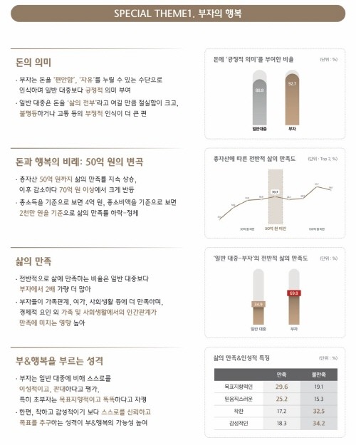 발간 17년째인 올해는 부자(금융자산 10억 원 이상 보유)의 자산관리 방식뿐만 아니라 ‘돈과 행복’이라는 본질적인 질문에 대해 심도 있게 분석함으로써 진정한 돈의 가치를 되새겨보고자 했다.