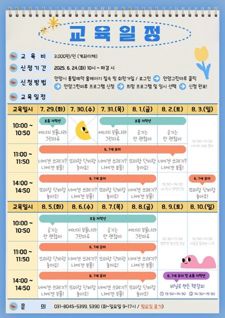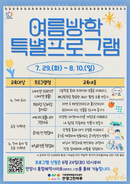 ▲안양그린마루 여름방학 특별프로그램 교육일정 포스터(사진=안양시) |