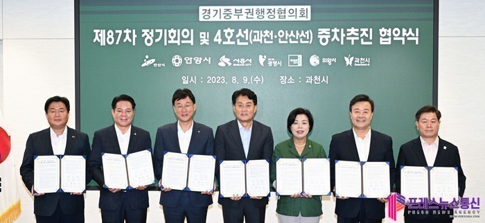 안산시(시장 이민근)는 지난 9일 디테크타워 과천빌딩에서 열린 경기중부권협의회 제87차 정기회의에서 과천, 안양, 시흥, 광명, 군포, 의왕 등 경기 중부권 6개 시와 지하철 4호선(과천·안산선) 증차 추진을 위한 업무협약을 체결했다고 10일 밝혔다.