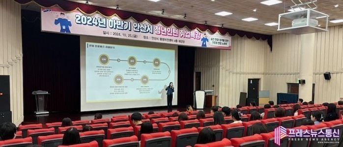 [프레스뉴스] 장현준 기자= 안산시(시장 이민근)는 지난 25일 안산시 평생비전센터 대강당에서 2024년 하반기 청년인턴사업 참여자 60명을 대상으로 취업특강을 개최했다고 28일 밝혔다.