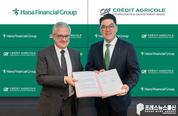 [프레스뉴스] 류현주 기자= 하나금융그룹(회장 함영주)은 지난 27일(현지시각) 프랑스 몽루주 소재 크레디 아그리콜 그룹 본사를 방문해, 글로벌 CIB 분야 선도 은행인 크레디 아그리콜 CIB(Crédit Agricole Corporate and Investment Bank)와 유럽 지역 글로벌 비즈니스 확대를 위한 업무협약을 체결했다고 밝혔다.