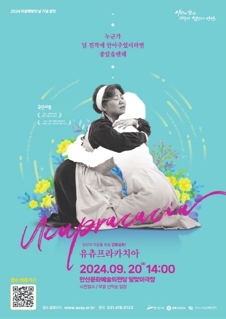 [프레스뉴스] 장현준 기자= 안산시(시장 이민근) 자살예방센터에서는 ‘자살예방의 날(9월 10일)’을 맞아 다음 달 20일 안산문화예술의전당 달맞이극장에서 연극 ‘유츄프라카치아’를 개최한다고 16일 밝혔다.