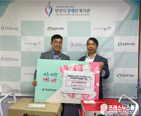 | ▲ 경기테크노파크가 지난 5일 안산시장애인복지관에 방문해 후원물품을 전달하고 있다.(사진=경기테크노파크) |