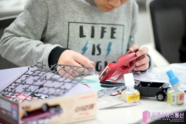 | ▲지난 산업역사박물관 프로그램에 참여한 한 학생이 자동차 모형을 직접 조립해보고 있다.(사진=안산시) |