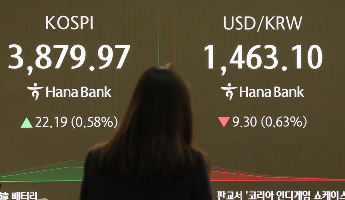 | ▲26일 오전 서울 중구 하나은행 딜링룸 전광판에 코스닥과 원달러 환율 시황이 표시되고 있다./사진=뉴스1 |
