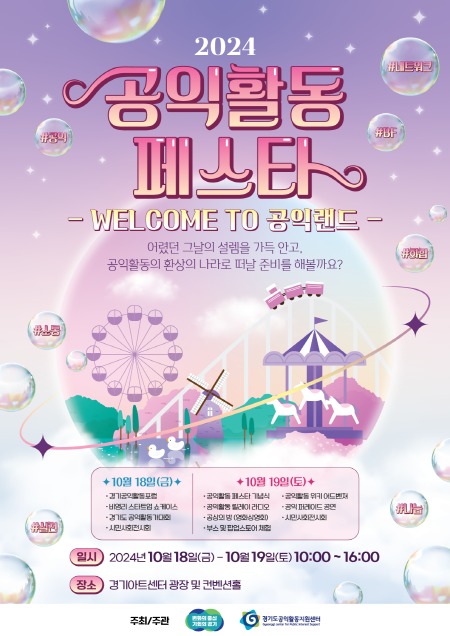 [프레스뉴스] 장현준 기자= 경기도는 10월 18일과 19일 경기아트센터(수원시 팔달구)에서 ‘2024 공익활동 페스타 : 웰컴 투(WELCOME TO) 공익랜드’ 행사를 개최한다.