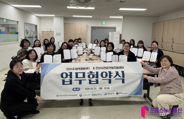[프레스뉴스] 장현준 기자= 안산시(시장 이민근) 건강가정지원센터(센터장 박영혜)는 지난달 31일 ‘안산시다함께돌봄센터’와 아동 돌봄 지원과 가족기능 강화, 건강한 가족문화 확산을 위한 업무 협약을 체결했다고 2일 밝혔다.