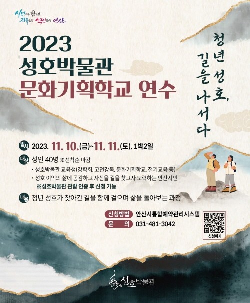[프레스뉴스] 장현준 기자= 안산시(시장 이민근) 성호박물관은 내달 10일부터 11일까지 문화기획학교 연수 ‘청년 성호, 길을 나서다’를 개최한다고 31일 밝혔다.